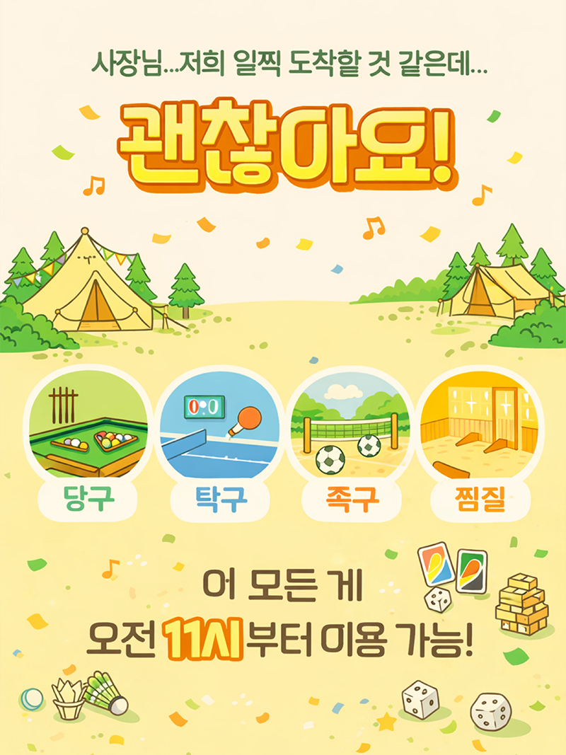 오하브글램핑이 '얼리체크인'을 시작합니다.